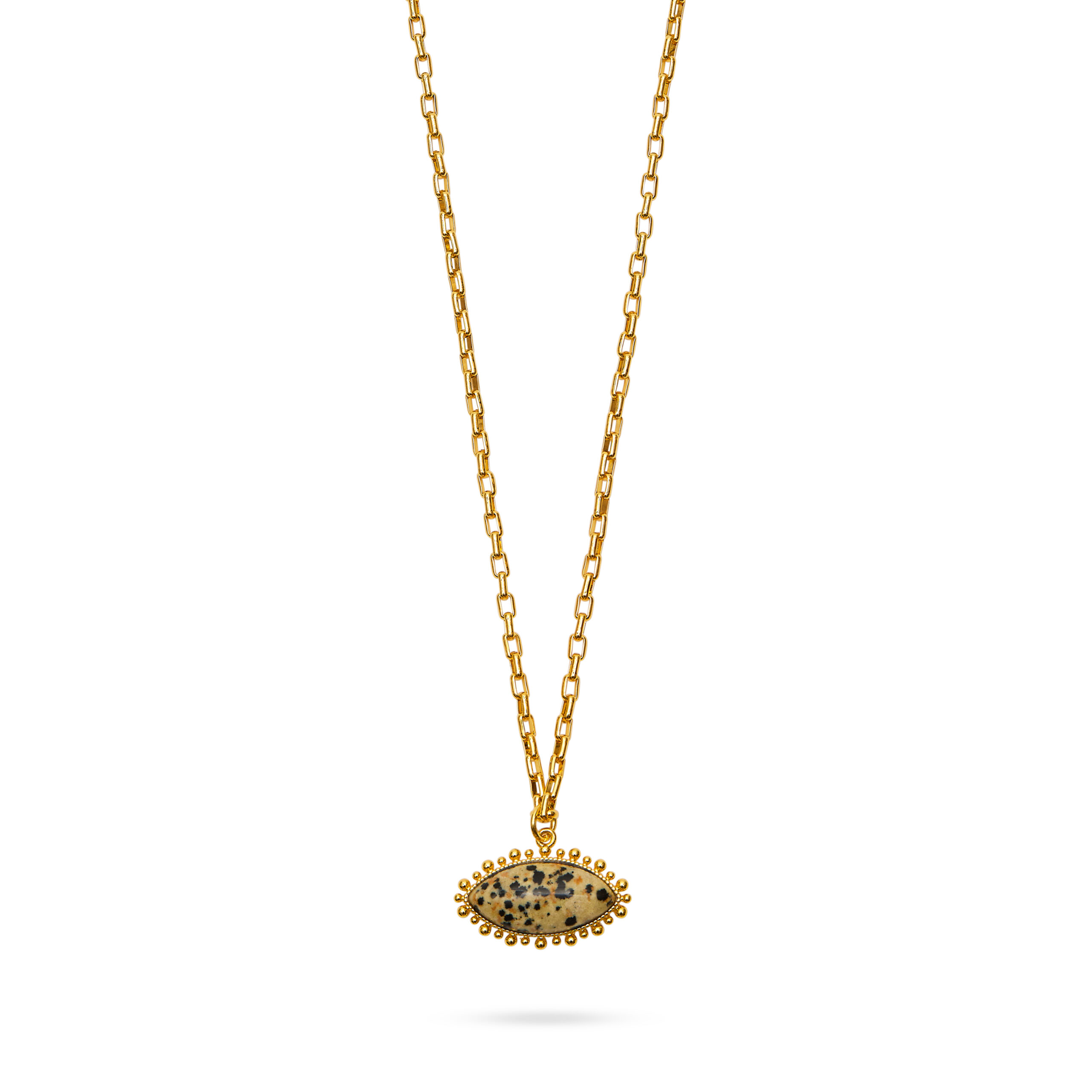 The collection introduces Bamboo Agate, Dalmatian Jasper, and Black Agate; striking semi-precious stones that add dept to the Talis Chains palette.